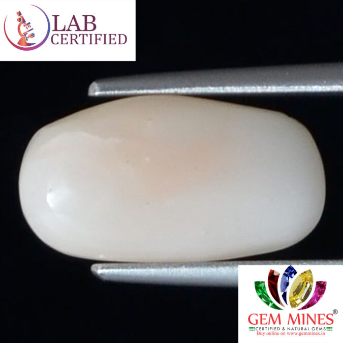 Beautiful 4.98 Ct. White Coral (Japanese Mines) Sava 5 Ratti Saphed Moonga. Free Horoscope & Free Pundit Ji Advise / Consultation. Original Natural Lab certified gems by IGI GTL / Birth stones / Large Gem Selection of shree shubh Rashi Ratan Vedic dhan at Gem Mines. May Bhagwan Brahma, Vishnu, Shiv & Universe bless you.