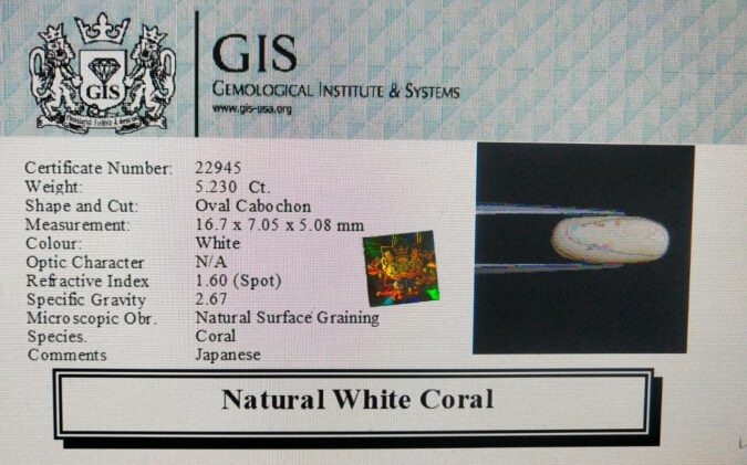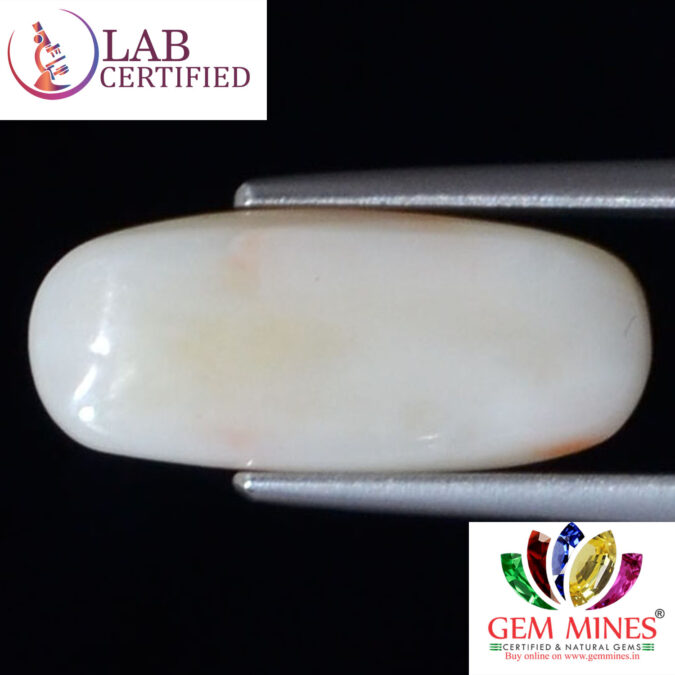 Beautiful 5.23 Ct. White Coral (Japanese Mines) Sava 5 Ratti Saphed Moonga. Free Horoscope & Free Pundit Ji Advise / Consultation. Original Natural Lab certified gems by IGI GTL / Birth stones / Large Gem Selection of shree shubh Rashi Ratan Vedic dhan at Gem Mines. May Bhagwan Brahma, Vishnu, Shiv & Universe bless you.