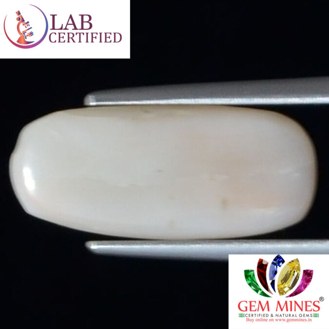 Beautiful 6.14 Ct. White Coral (Japanese Mines) Sava 6 Ratti Saphed Moonga. Free Horoscope & Free Pundit Ji Advise / Consultation. Original Natural Lab certified gems by IGI GTL / Birth stones / Large Gem Selection of shree shubh Rashi Ratan Vedic dhan at Gem Mines. May Bhagwan Brahma, Vishnu, Shiv & Universe bless you.