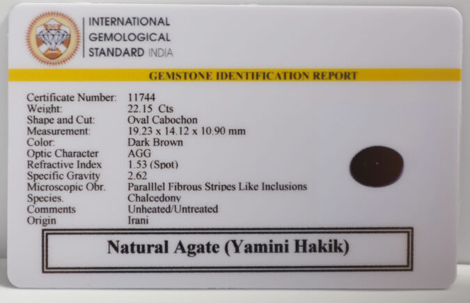 Beautiful 22.15 Cts Natural Yamini Agate (Yamini Hakik) (AAA+-Mines) sva 24+ Ratti YAMINI HAKIK. Free Horoscope & Free Pundit Ji Astrological Advise / Consultation. Original Natural Lab certified gems by IGI GTL / Birth stones / Large Gem Selection of shree shubh Rashi Ratan Vedic dhan at Gem Mines. May Bhagwan Brahma, Vishnu, Shiv & Universe bless you.