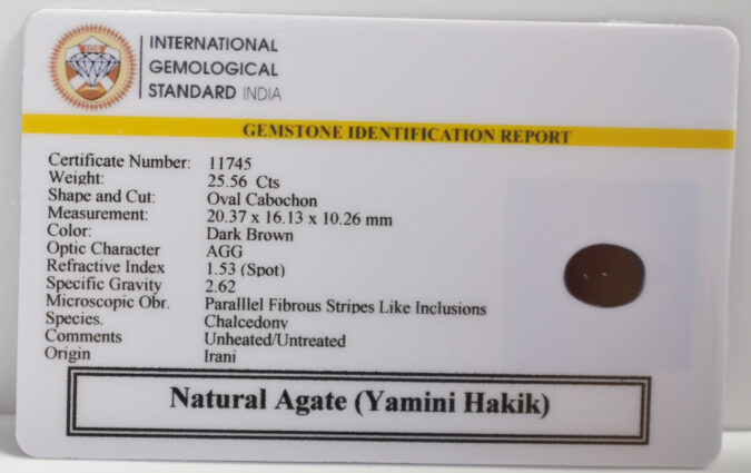 Certified Natural Yamini Agate (Yamini Hakik) 25.56 Ct.(28+ Ratti) in Oval Cabochon shape