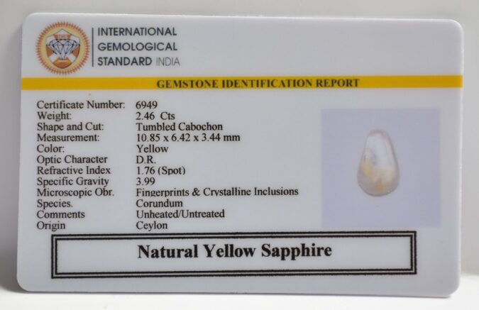 Certified Natural Yellow Sapphire 2.46 Ct.(2+ Ratti) in Tumbled Cabochon shape