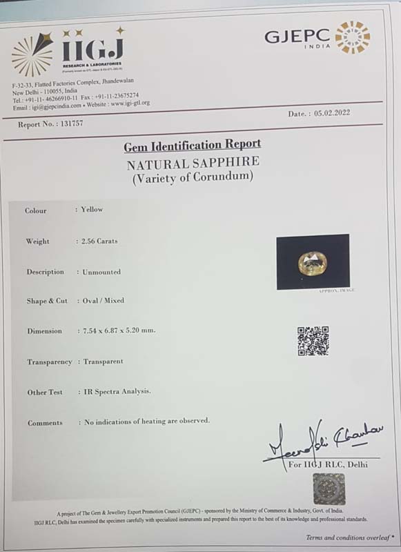 Beautiful 2.56 Ct. Yellow Sapphire (Ceylon Mines) Sava 2 Ratti Pukhraj. Free Horoscope & Free Pundit Ji Advise / Consultation. Original Natural Lab certified gems by IGI GTL / Birth stones / Large Gem Selection of shree shubh Rashi Ratan Vedic dhan at Gem Mines. May Bhagwan Brahma, Vishnu, Shiv & Universe bless you.