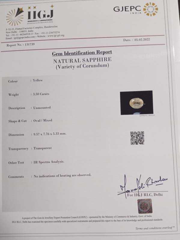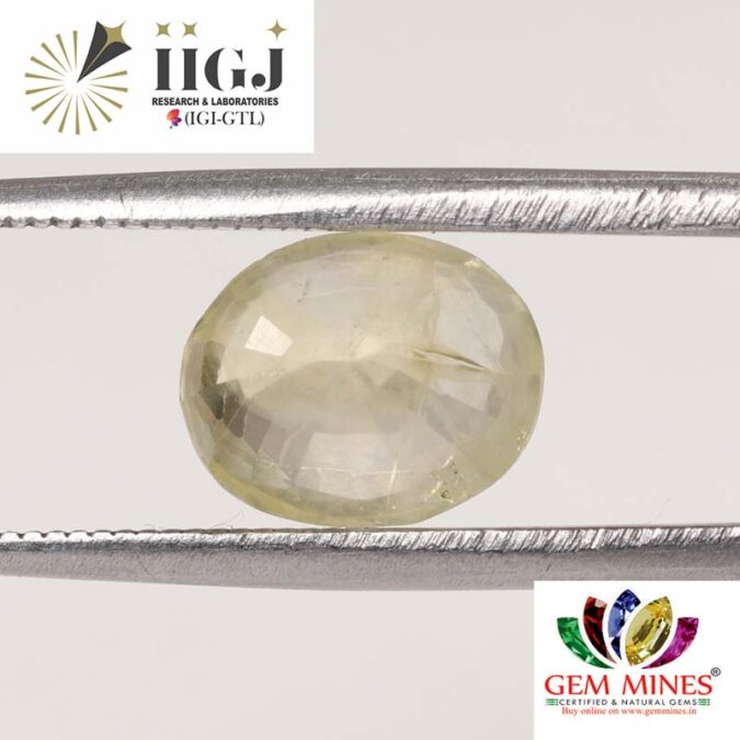 Beautiful 3.5 Ct. Yellow Sapphire (Ceylon Mines) Sava 3 Ratti Pukhraj. Free Horoscope & Free Pundit Ji Advise / Consultation. Original Natural Lab certified gems by IGI GTL / Birth stones / Large Gem Selection of shree shubh Rashi Ratan Vedic dhan at Gem Mines. May Bhagwan Brahma, Vishnu, Shiv & Universe bless you.