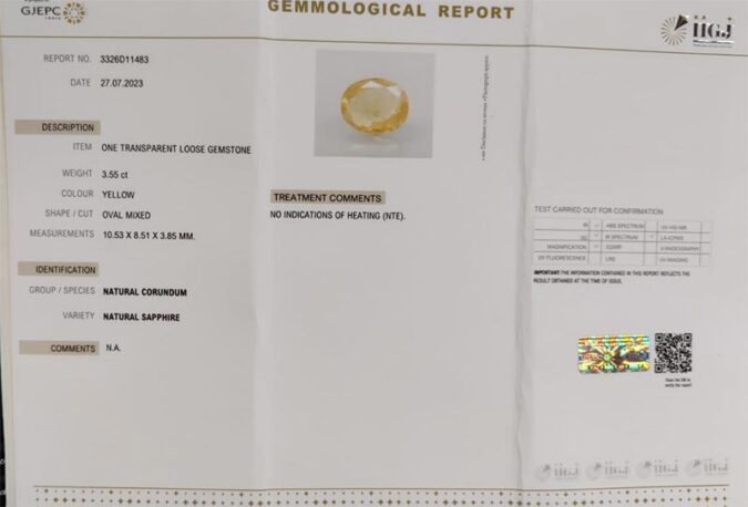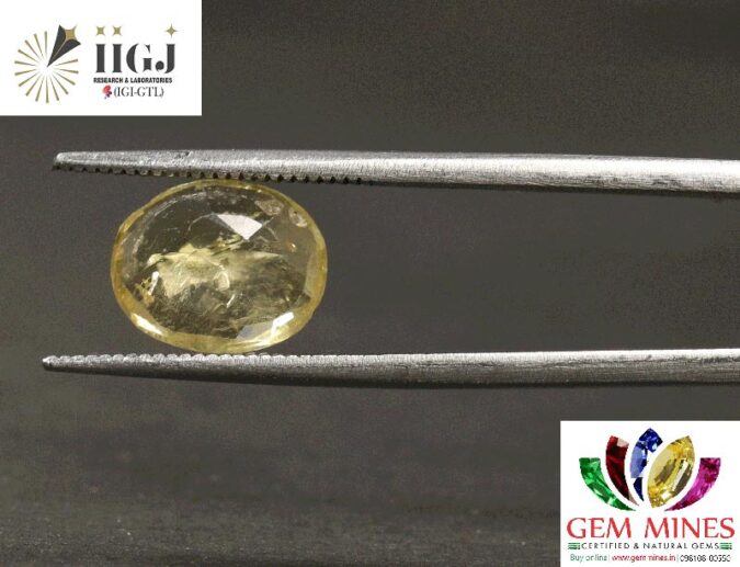 Beautiful 3.55 Ct. Natural Yellow Sapphire (AAA-Mines) sva 3+ Ratti Pukhraj. Free Horoscope & Free Pundit Ji Astrological Advise / Consultation. Original Natural Lab certified gems by IGI GTL / Birth stones / Large Gem Selection of shree shubh Rashi Ratan Vedic dhan at Gem Mines. May Bhagwan Brahma, Vishnu, Shiv & Universe bless you.