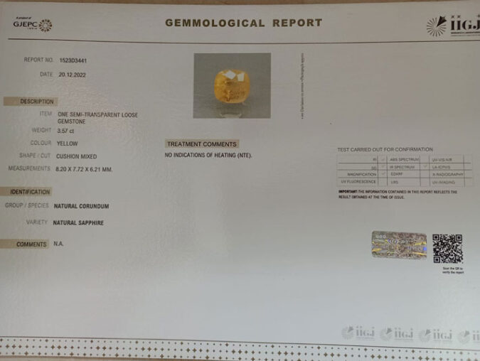 Beautiful 3.57 Ct. Natural Yellow Sapphire (AAA+-Mines) sva 3+ Ratti Pukhraj. Free Horoscope & Free Pundit Ji Astrological Advise / Consultation. Original Natural Lab certified gems by IGI GTL / Birth stones / Large Gem Selection of shree shubh Rashi Ratan Vedic dhan at Gem Mines. May Bhagwan Brahma, Vishnu, Shiv & Universe bless you.