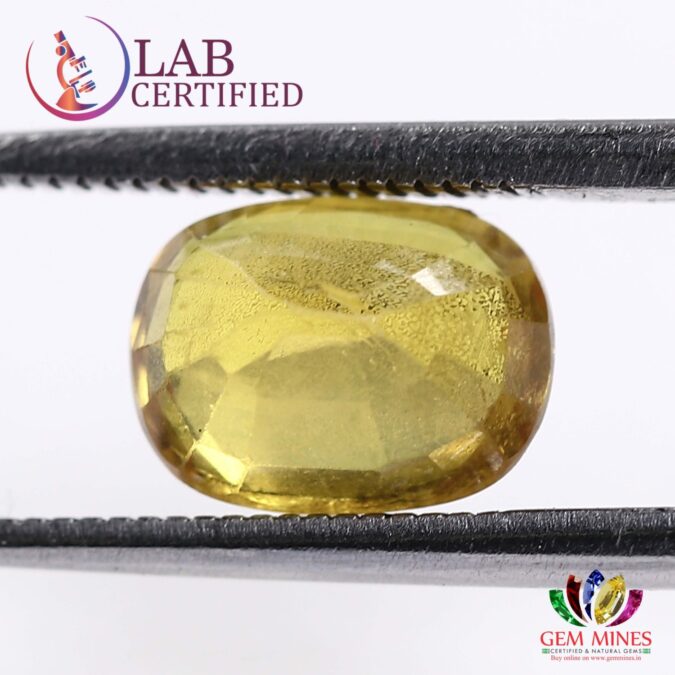 Beautiful 3.7 Ct. Yellow Sapphire (Ceylon Mines) Sava 4 Ratti Pukhraj. Free Horoscope & Free Pundit Ji Advise / Consultation. Original Natural Lab certified gems by IGI GTL / Birth stones / Large Gem Selection of shree shubh Rashi Ratan Vedic dhan at Gem Mines. May Bhagwan Brahma, Vishnu, Shiv & Universe bless you.