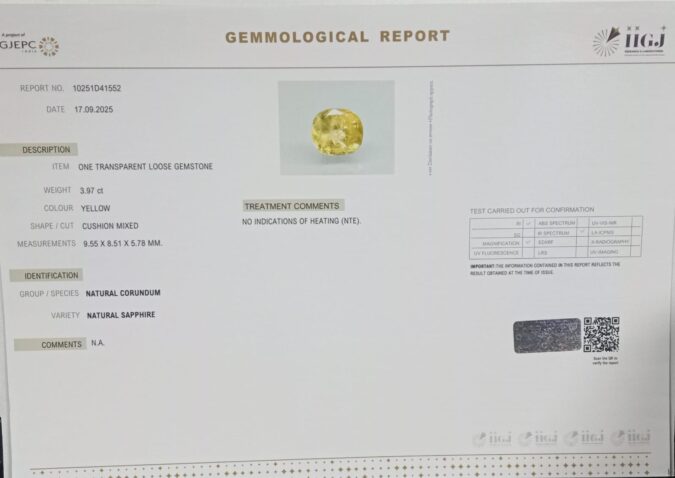 YELLOW SAPPHIRE 3.97 Ct.