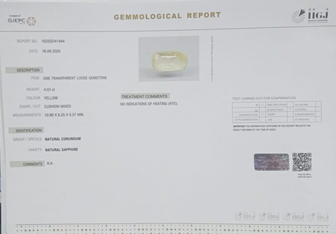 Beautiful 4.03 Cts Natural Yellow Sapphire (AAA+-Mines) sva 4+ Ratti YELLOW SAPPHIRE. Free Horoscope & Free Pundit Ji Astrological Advise / Consultation. Original Natural Lab certified gems by IGI GTL / Birth stones / Large Gem Selection of shree shubh Rashi Ratan Vedic dhan at Gem Mines. May Bhagwan Brahma, Vishnu, Shiv & Universe bless you.