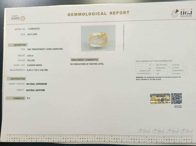 Beautiful 4.04 Cts Natural Yellow Sapphire (AAA+-Mines) sva 4+ Ratti YELLOW SAPPHIRE. Free Horoscope & Free Pundit Ji Astrological Advise / Consultation. Original Natural Lab certified gems by IGI GTL / Birth stones / Large Gem Selection of shree shubh Rashi Ratan Vedic dhan at Gem Mines. May Bhagwan Brahma, Vishnu, Shiv & Universe bless you.