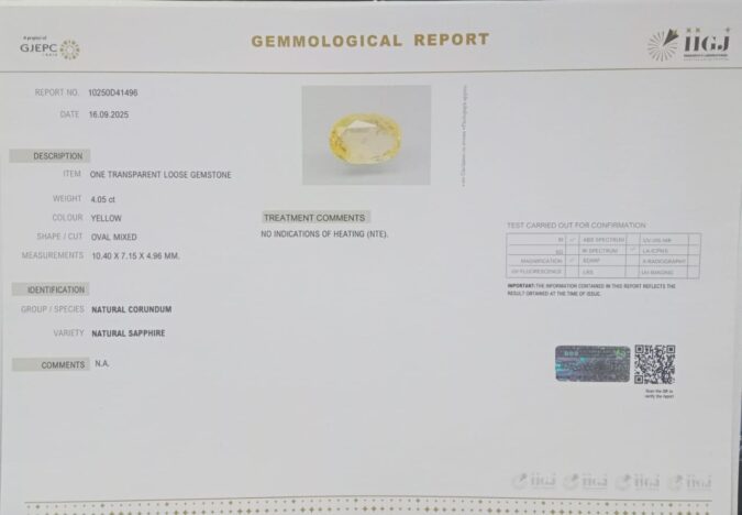 YELLOW SAPPHIRE 4.05 Ct.