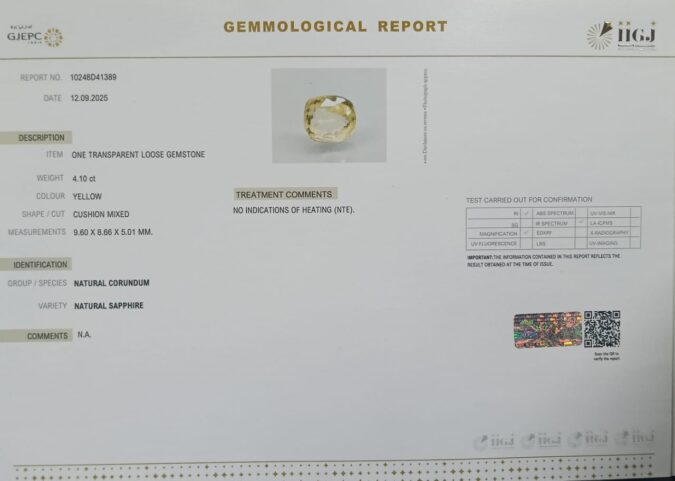 Beautiful 4.1 Cts Natural Yellow Sapphire (Top+-Mines) sva 4+ Ratti YELLOW SAPPHIRE. Free Horoscope & Free Pundit Ji Astrological Advise / Consultation. Original Natural Lab certified gems by IGI GTL / Birth stones / Large Gem Selection of shree shubh Rashi Ratan Vedic dhan at Gem Mines. May Bhagwan Brahma, Vishnu, Shiv & Universe bless you.