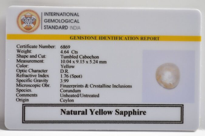 Certified Natural Yellow Sapphire 4.64 Ct.(5+ Ratti) in Tumbled Cabochon shape