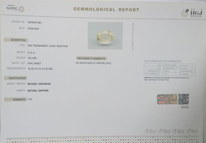 Beautiful 5.12 Cts Natural Yellow Sapphire (Top-Mines) sva 5+ Ratti YELLOW SAPPHIRE. Free Horoscope & Free Pundit Ji Astrological Advise / Consultation. Original Natural Lab certified gems by IGI GTL / Birth stones / Large Gem Selection of shree shubh Rashi Ratan Vedic dhan at Gem Mines. May Bhagwan Brahma, Vishnu, Shiv & Universe bless you.
