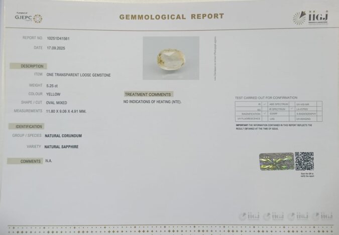 Beautiful 5.25 Cts Natural Yellow Sapphire (Top+-Mines) sva 5+ Ratti YELLOW SAPPHIRE. Free Horoscope & Free Pundit Ji Astrological Advise / Consultation. Original Natural Lab certified gems by IGI GTL / Birth stones / Large Gem Selection of shree shubh Rashi Ratan Vedic dhan at Gem Mines. May Bhagwan Brahma, Vishnu, Shiv & Universe bless you.