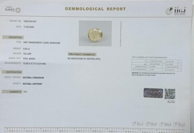 Beautiful 5.62 Cts Natural Yellow Sapphire (Top-Mines) sva 6+ Ratti YELLOW SAPPHIRE. Free Horoscope & Free Pundit Ji Astrological Advise / Consultation. Original Natural Lab certified gems by IGI GTL / Birth stones / Large Gem Selection of shree shubh Rashi Ratan Vedic dhan at Gem Mines. May Bhagwan Brahma, Vishnu, Shiv & Universe bless you.