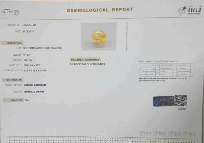 Beautiful 6.13 Cts Natural Yellow Sapphire (Top+-Mines) sva 6+ Ratti YELLOW SAPPHIRE. Free Horoscope & Free Pundit Ji Astrological Advise / Consultation. Original Natural Lab certified gems by IGI GTL / Birth stones / Large Gem Selection of shree shubh Rashi Ratan Vedic dhan at Gem Mines. May Bhagwan Brahma, Vishnu, Shiv & Universe bless you.