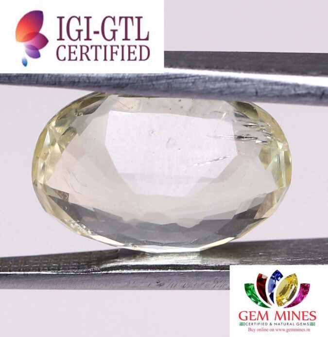 Beautiful 6.15 Ct. Yellow Sapphire (Ceylon Sri Lanka Mines) Sava 6 Ratti Pukhraj. Free Horoscope & Free Pundit Ji Advise / Consultation. Original Natural Lab certified gems by IGI GTL / Birth stones / Large Gem Selection of shree shubh Rashi Ratan Vedic dhan at Gem Mines. May Bhagwan Brahma, Vishnu, Shiv & Universe bless you.