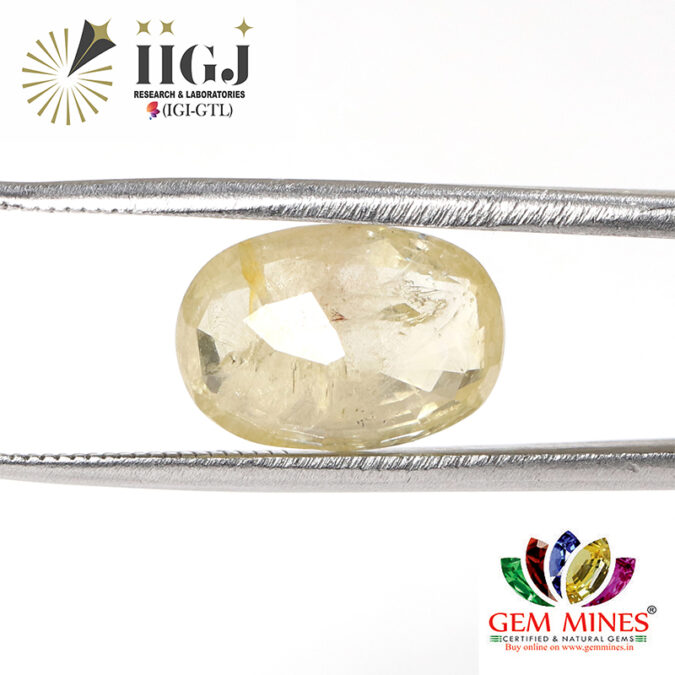 Beautiful 6.21 Ct. Natural Yellow Sapphire (AAA-Mines) sva 6+ Ratti Pukhraj. Free Horoscope & Free Pundit Ji Astrological Advise / Consultation. Original Natural Lab certified gems by IGI GTL / Birth stones / Large Gem Selection of shree shubh Rashi Ratan Vedic dhan at Gem Mines. May Bhagwan Brahma, Vishnu, Shiv & Universe bless you.
