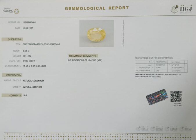 Beautiful 6.51 Cts Natural Yellow Sapphire (Top+-Mines) sva 7+ Ratti YELLOW SAPPHIRE. Free Horoscope & Free Pundit Ji Astrological Advise / Consultation. Original Natural Lab certified gems by IGI GTL / Birth stones / Large Gem Selection of shree shubh Rashi Ratan Vedic dhan at Gem Mines. May Bhagwan Brahma, Vishnu, Shiv & Universe bless you.