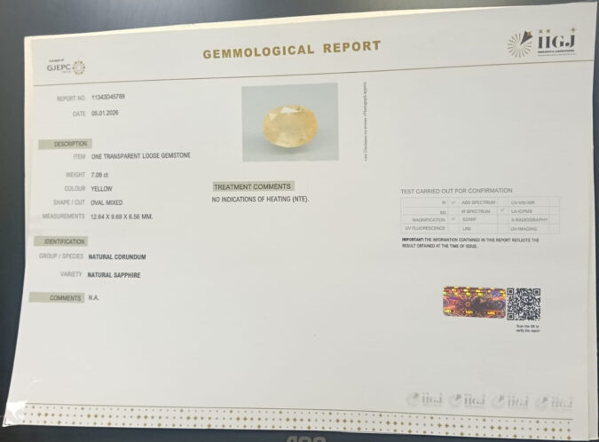 Beautiful 7.08 Cts Natural Yellow Sapphire (AAA+-Mines) sva 7+ Ratti YELLOW SAPPHIRE. Free Horoscope & Free Pundit Ji Astrological Advise / Consultation. Original Natural Lab certified gems by IGI GTL / Birth stones / Large Gem Selection of shree shubh Rashi Ratan Vedic dhan at Gem Mines. May Bhagwan Brahma, Vishnu, Shiv & Universe bless you.