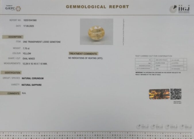 Beautiful 7.7 Cts Natural Yellow Sapphire (Top-Mines) sva 8+ Ratti YELLOW SAPPHIRE. Free Horoscope & Free Pundit Ji Astrological Advise / Consultation. Original Natural Lab certified gems by IGI GTL / Birth stones / Large Gem Selection of shree shubh Rashi Ratan Vedic dhan at Gem Mines. May Bhagwan Brahma, Vishnu, Shiv & Universe bless you.