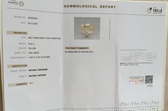 YELLOW SAPPHIRE 8.94 Ct.