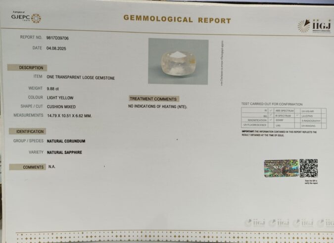 Yellow sapphire is one of the most revered gemstones in Vedic astrology, celebrated for its vibrant golden glow and powerful energies. Wearing a natural yellow sapphire is believed to bring prosperity, wealth, and success in career and personal life. The yellow sapphire benefits include enhancing clarity of thought, improving decision-making, boosting confidence, and attracting positive energies. Beyond material gains, it is said to strengthen relationships, remove obstacles, and bring overall harmony. Carefully sourced and lab-certified, this yellow sapphire is a perfect Rashi Ratan for anyone seeking divine blessings, abundance, and spiritual growth in life.